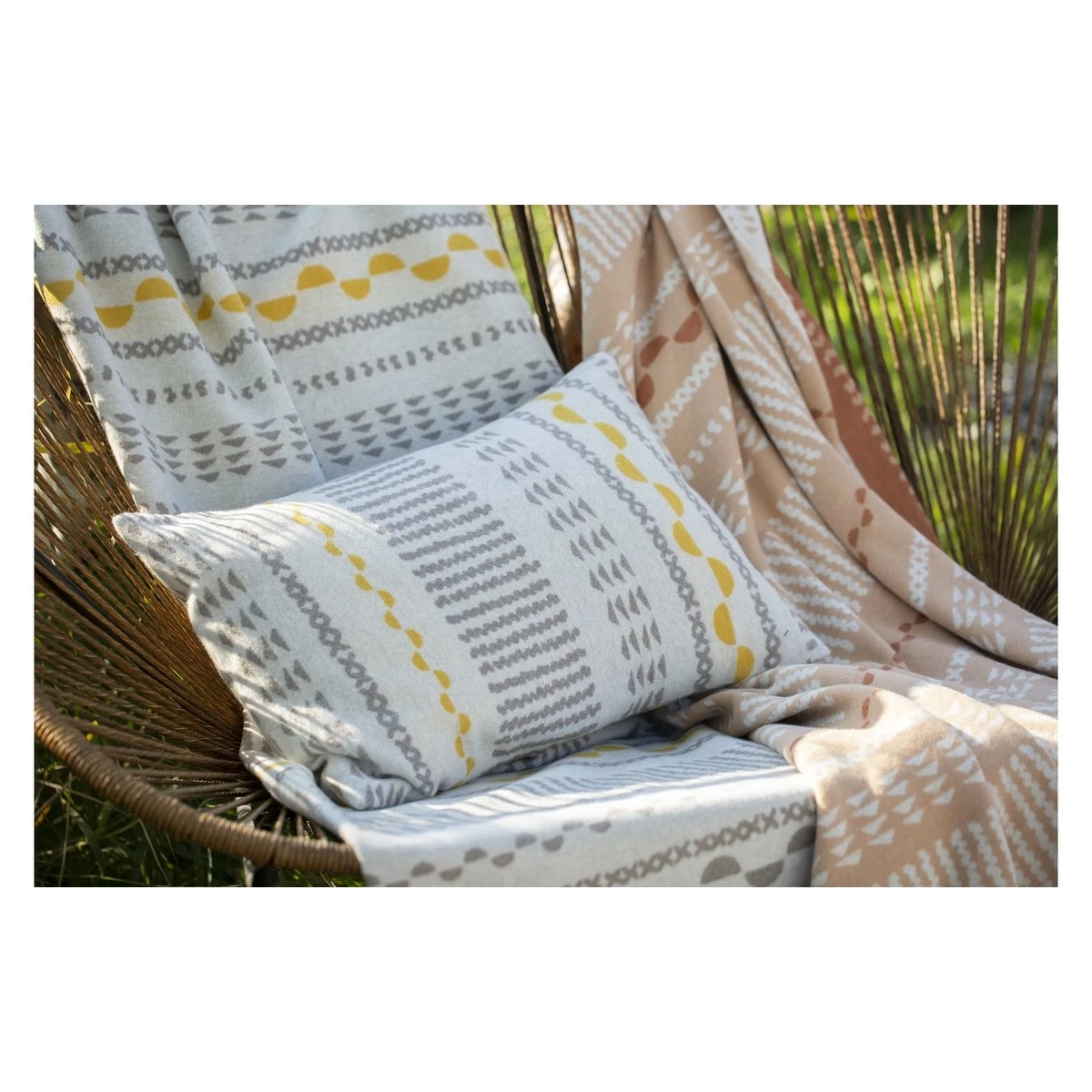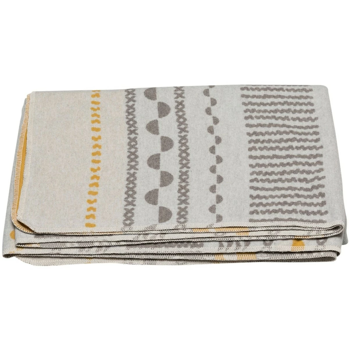 The beautiful border blanket made of cozy flannel is an uncomplicated companion for cozy hours. is pleasantly soft and easy to care for and the high cotton content ensures good breathability and moisture balance. Beautiful quality, made in Austria at a good price-performance ratio. Edges curled. Dimensions: 140×200 cm, material: 85% cotton, 8% viscose, 7% acrylic, color: off-white / gray / yellow, care: washable at 40 degrees gentle cycle, do not bleach, do not tumble dry, iron warm.