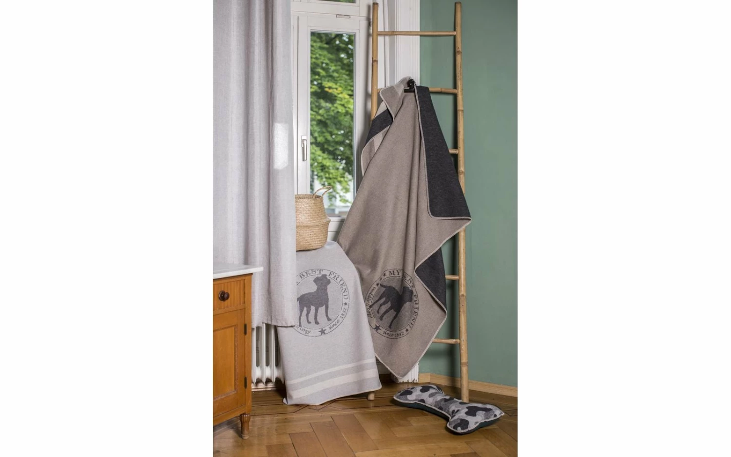 This lovely smoke pet blanket, part of the cuddly and cozy range, its so warm and cozy. Dimensions: w100cm x l140cm. Material: 85% cotton, 8% rayon, 7% poly acrylic.
