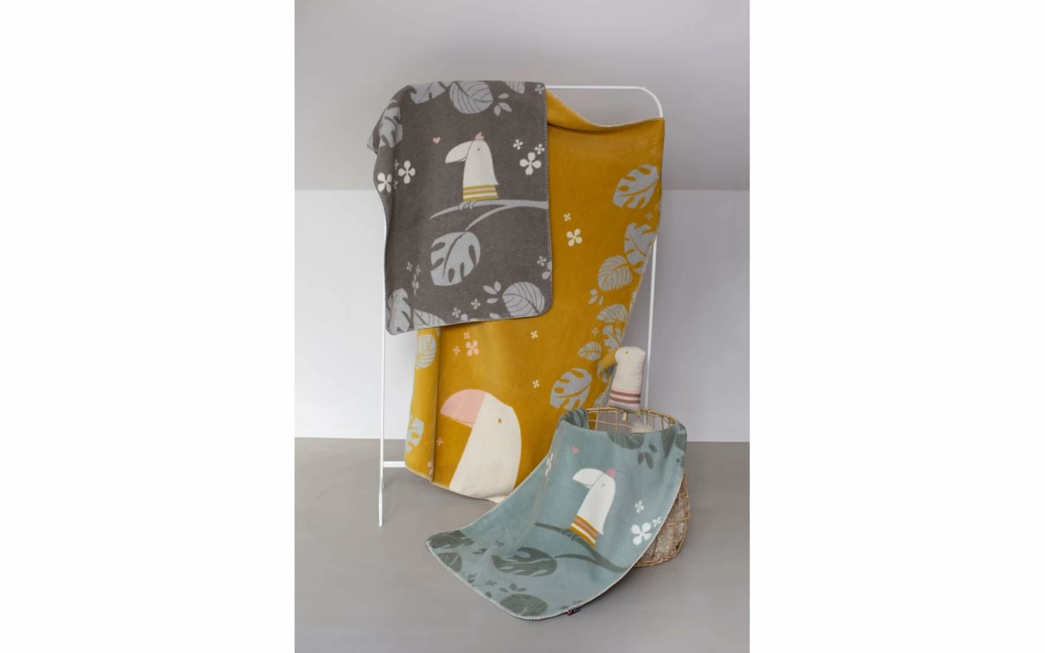 Die Babydecke Mila überzeugt mit ihrer unverwechselbar kuscheligen Qualität und leistet vor allem in der kühleren Jahreszeit gute Dienste. Der lustige Tukan in der Mitte wird zeitgemäß von großen Monsterablättern eingerahmt. Ein ansprechendes Motiv für groß und klein und ein unverzichtbarer, praktischer Begleiter im Alltag mit Kindern. Qualität made in Austria. Abmessung: 100×75 cm, Material: 85% Baumwolle, 8% Viskose, 7% Polyacryl, Farbe: Salbeigrün/Bunt,