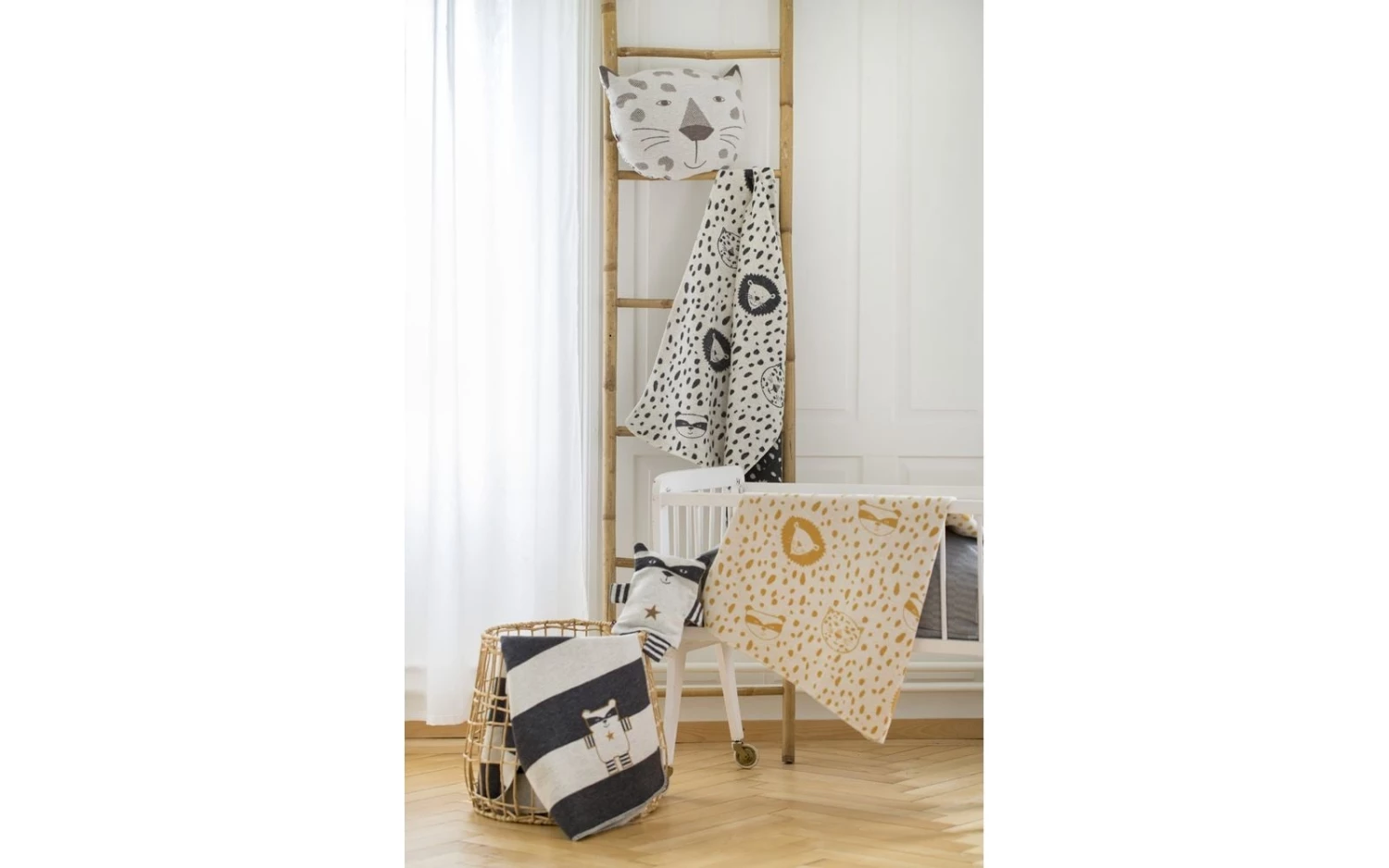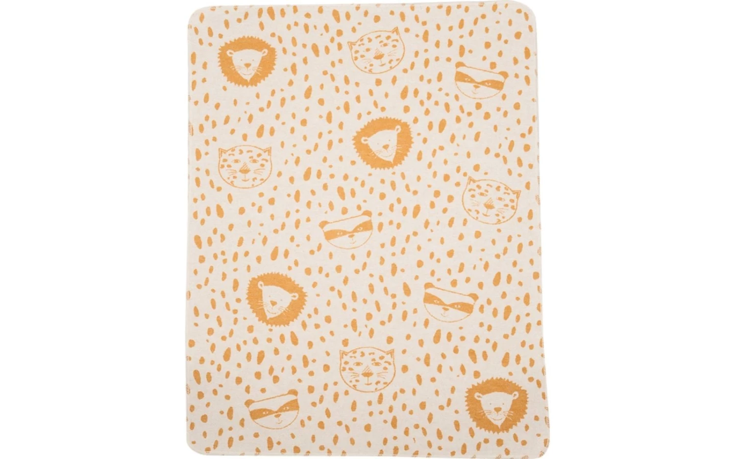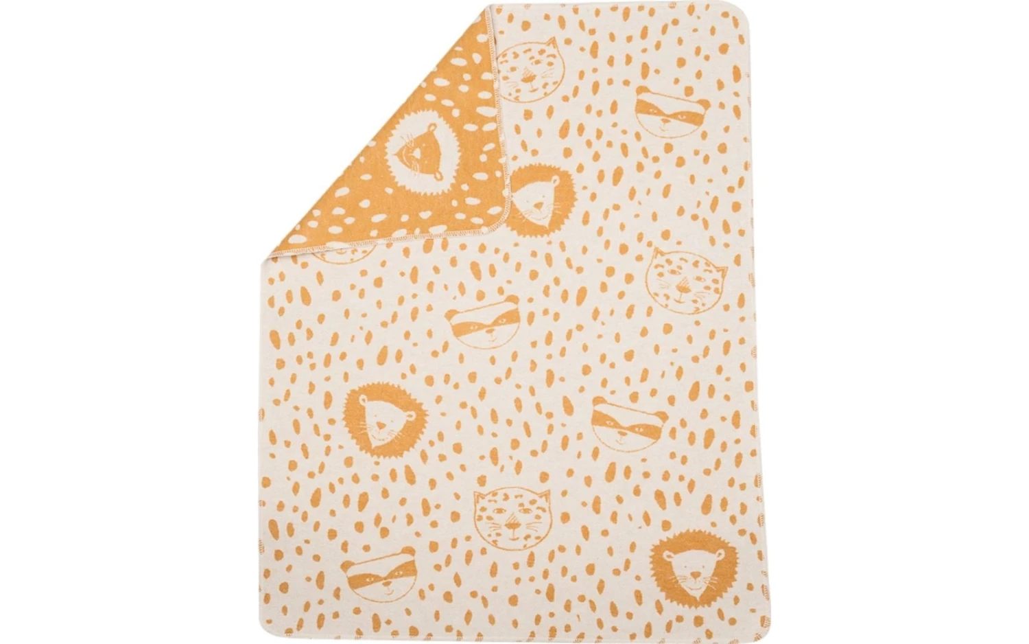 Tiger, washable and lion meet on the cheerful yellow baby blanket. The light flannel blanket keeps you warm in every season. An indispensable companion and a beautiful, affordable gift for the birth. The color of the pattern is opposite on the back. Ended edges. Quality product, made in Austria. Dimensions: 70×90 cm, material: 95% cotton, 5% viscose.